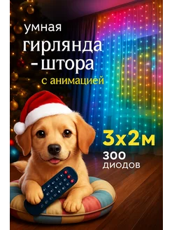 Умная гирлянда smart штора на окно 3 х 2 метра на usb