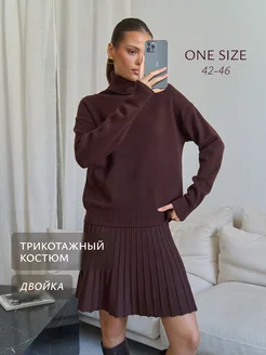 Трикотажный теплый вязаный костюм с юбкой на осень