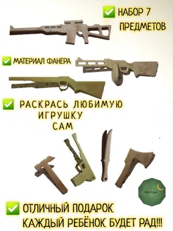 Набор деревянного оружия из 7 предметов автомат пистолет