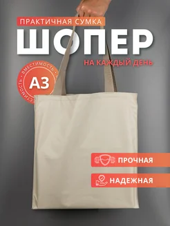 Сумка шоппер тканевая большая шоппер через плечо в офис