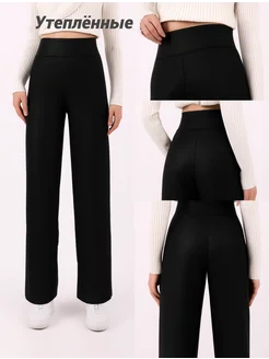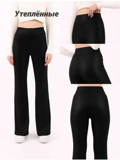Леггинсы брюки утепленные кожаные экокожа широкие клеш