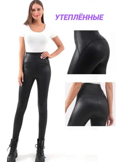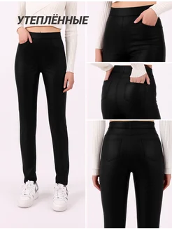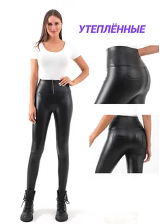 Кожаные брюки леггинсы утепленные штаны широкие экокожа