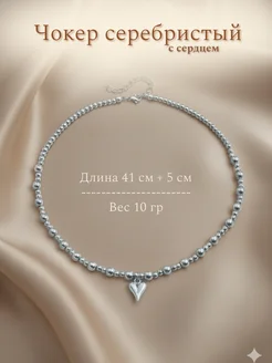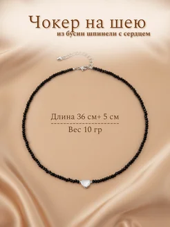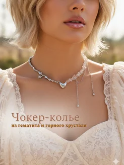 Колье чокер на шею из гематита и горного хрусталя с сердцем