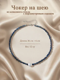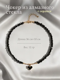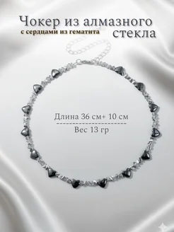 Чокер на шею из алмазного стекла с сердцами из гематита