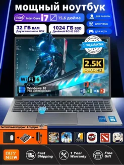 i7 Ноутбук для учебы и работы игровой 15.6" 32 ГБ, SSD 2ТБ