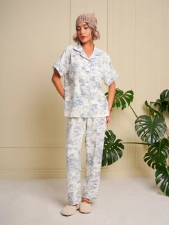 Пижама женская тройка со штанами и шортами