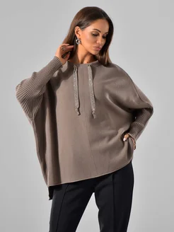 Вязаная кофта с горлом удлиненная оверсайз