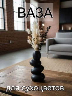 Ваза для сухоцветов "каменный баланс" чёрная, гипс, 17см
