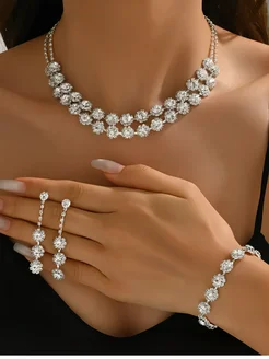Набор бижутерии колье и серьги, браслет, кольцо со стразами