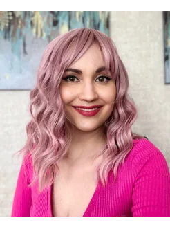 Розовый парик каре с челкой
