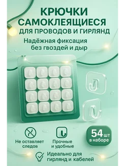 Суперкрючки для гирлянд самоклеящиеся прозрачные 54шт