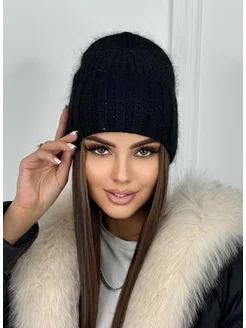 Шапка из ангоры на флисе теплая практичная стильная