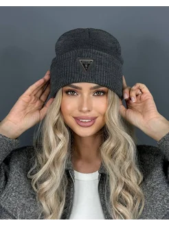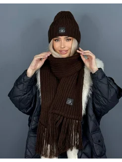 Шапка стильная утепленная на флисе с длинным шарфом хит