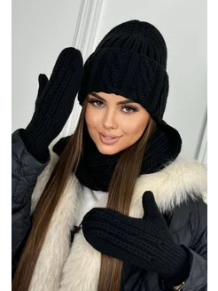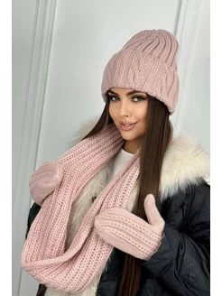 Шапка теплая зимняя на флисе с хомутом и варежками