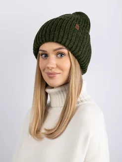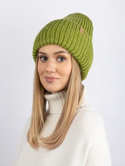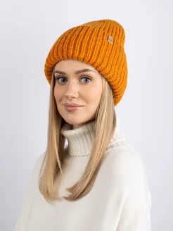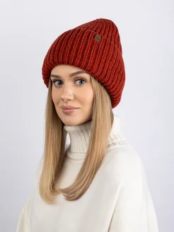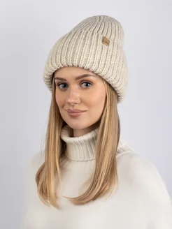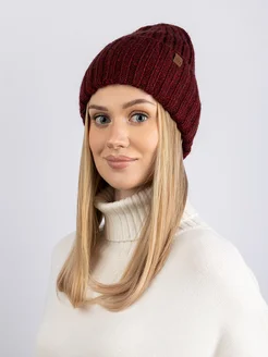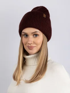 Шапка вязаная бини зимняя с отворотом