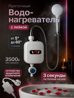 Водонагреватель проточный электрический, душевая лейка, УЗО