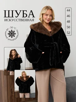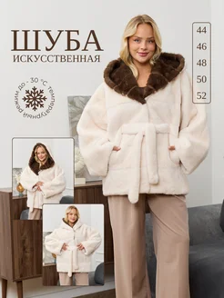 Шуба искусственная из экомеха с капюшоном