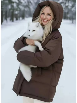 Куртка зимняя оверсайз с капюшоном удлиненная