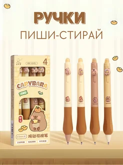 Ручки шариковые автоматические с капибарой стираемые, 4 шт
