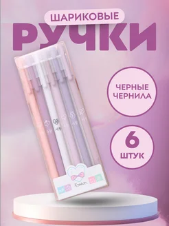 Ручки шариковые тонкие с черными чернилами, 6шт