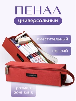 Пенал красный для школы, универсальный на молнии
