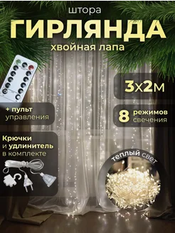 Новогодняя гирлянда штора хвойная лапа на окно 3х2