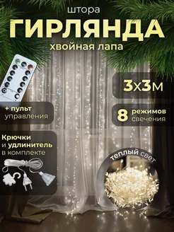 Новогодняя гирлянда штора хвойная лапа на окно 3х3