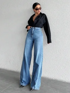 Джинсы широкие с высокой посадкой