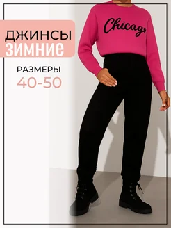 Джинсы широкие утепленные c высокой посадкой