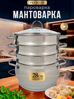 Мантоварка пароварка трех ярусная из нержавеющей стали 28 см