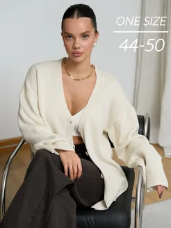 Свитер вязаный с v-образным вырезом бежевый теплый