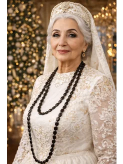Длинные бусы из дерева Нефертити-VI, ручная работа