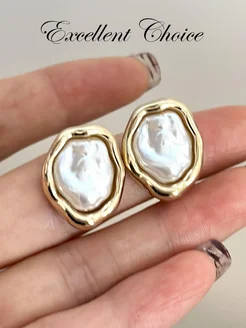 Серьги гвоздики жемчужные золотистые