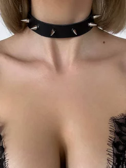 Чокер на шею кожаный с шипами