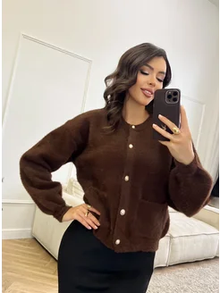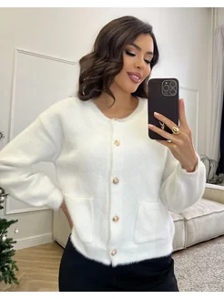 Пушистый кардиган укороченный кофта теплая на пуговицах