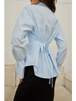 Приталенная рубашка оверсайз в полоску блузка с воланами