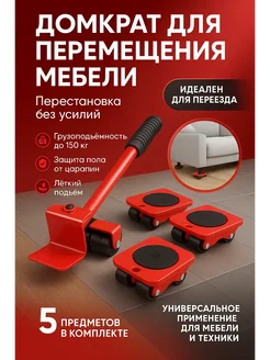 Домкрат для перевозки мебели с рычагом и роликами до 150 кг