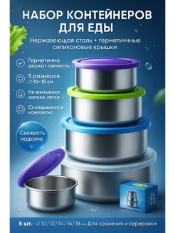 Контейнеры для еды из нержавеющей стали, набор 5 размеров