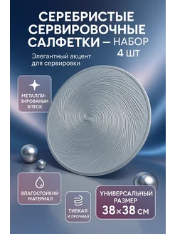 Серебристые сервировочные салфетки 38×38 см, набор 4 шт