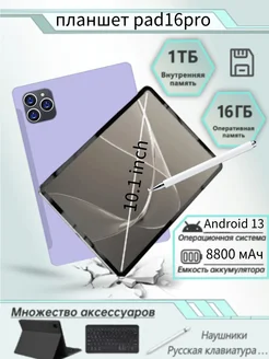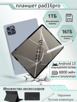 Планшет с мыши pad16pro 16GB+1024GB андроид с клавиатурой
