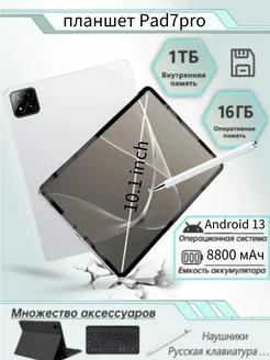 Планшет с мыши pad7pro 16GB+1024GB андроид с клавиатурой