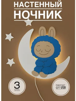 Ночник настенный светильник детский луна из дерева
