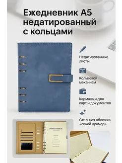 Ежедневник А5 органайзер с кольцами синий