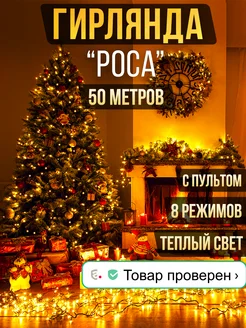 Гирлянда роса-мишура хвойная лапа желтая 50 метров