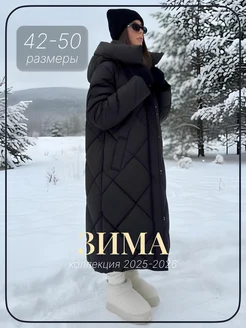 Пуховик длинный с капюшоном зимний