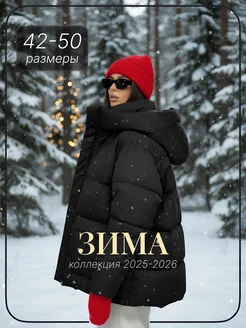 Пуховик оверсайз удлиненный с капюшоном