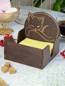 Салфетница деревянная квадратная Спящая кошка
