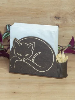Салфетница деревянная Спящая кошка с отделом для зубочисток