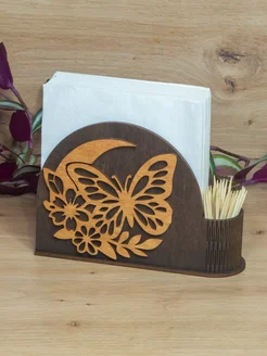 Салфетница деревянная Бабочка с отделом для зубочисток