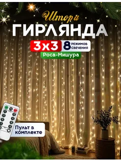 Новогодняя гирлянда штора хвойная лапа мишура 3х3